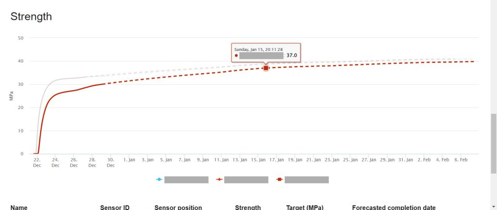 In the previous mode of operation, Thomas Concrete Group wasn’t able to provide customers with any meaningful insights about the properties of their concrete without extensive, and expensive, manual hands-on analysis and measurements, meaning that builders often waited longer than necessary to ensure that the material in the construction part was strong enough to meet safety thresholds. As an example, without accurate insights, builders would let the concrete cure until it reached a hardness of 46 or 47 megapascals, even though 40 MPa would be sufficient, resulting in unnecessary waiting time for each and every construction part, time that can add up to hours, days and even week during the course of a construction project, prolonging the overall project implementation time. Only then could they move on to the next phase of construction, such as adding another floor to a building.
